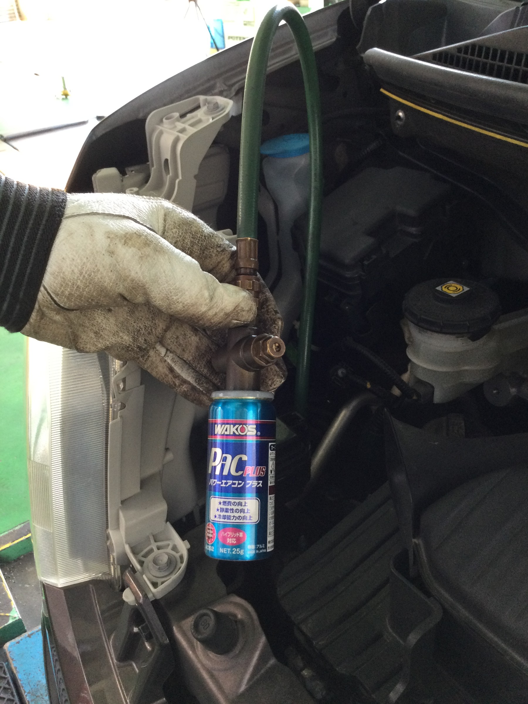 専用のホースで低弁圧と添加剤をつなぎ、注入していきます!!