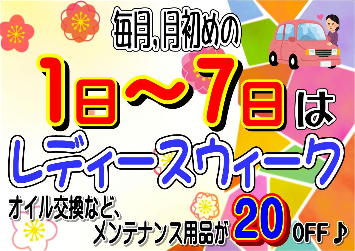 毎度おなじみ、月初めは女性にお得な1週間、レディースウィークを開催しています!