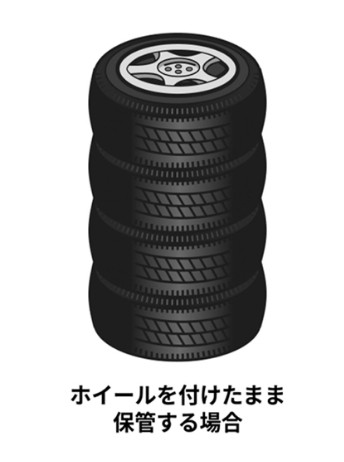 ④タイヤの保管法(ホイールがついている場合)