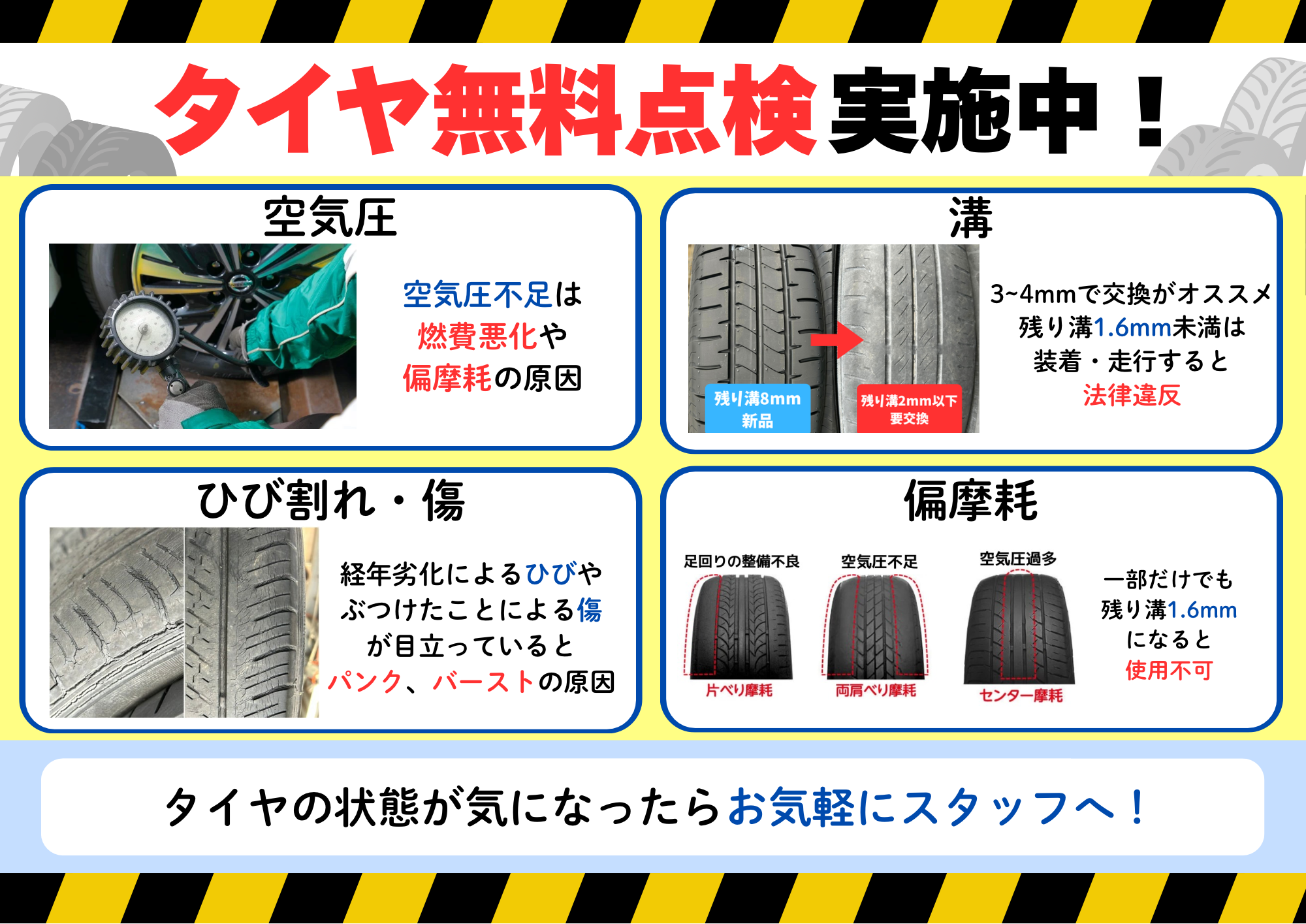 お使いのタイヤの状態、把握していますか?【タイヤ無料点検実施中】