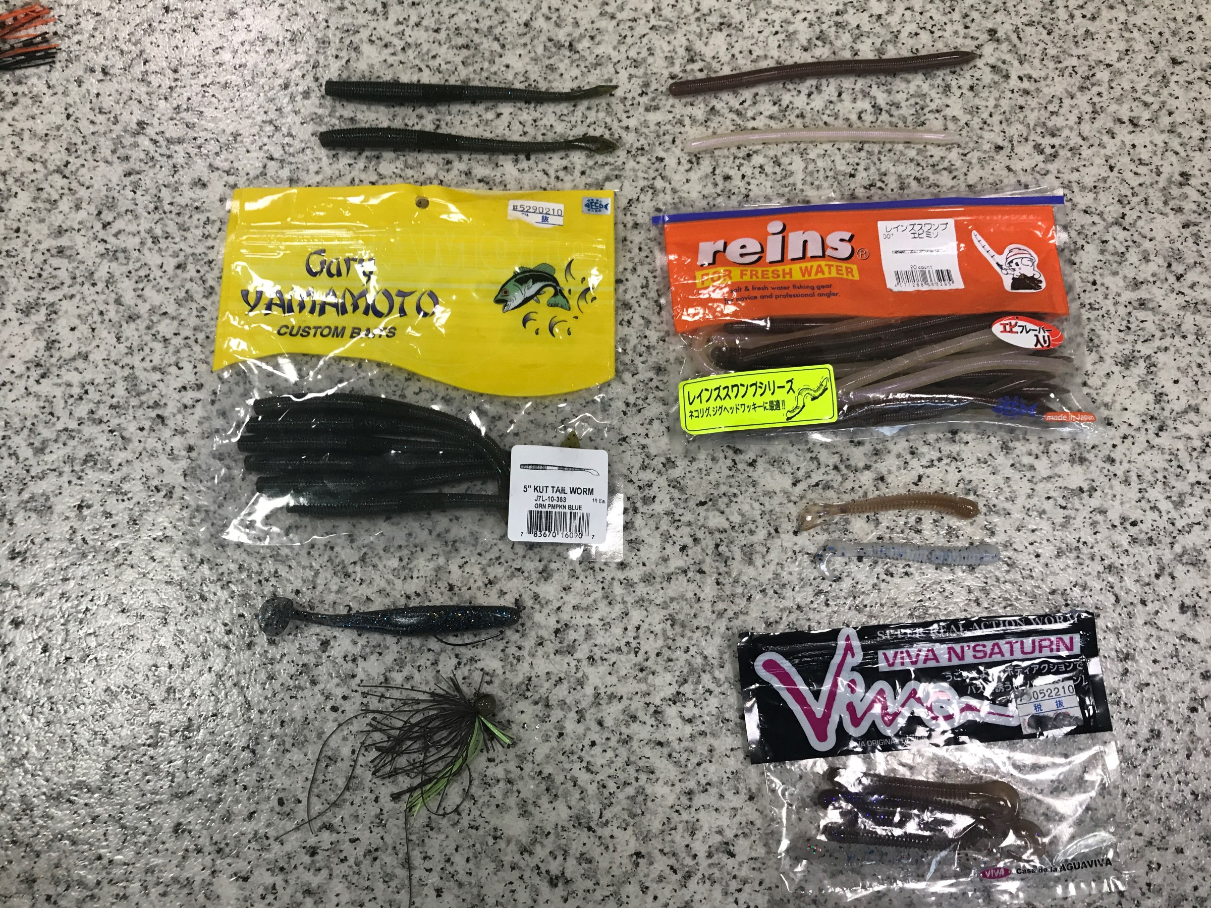 簡単にいうとワームです!ワームというのはゴムの素材で作られた物であり、それがミミズやエビあとは稚魚などすごくリアルに作られています!このような物を水の中で動かすと本物そっくりに動きそれにバス達が反応し食いつくのです!