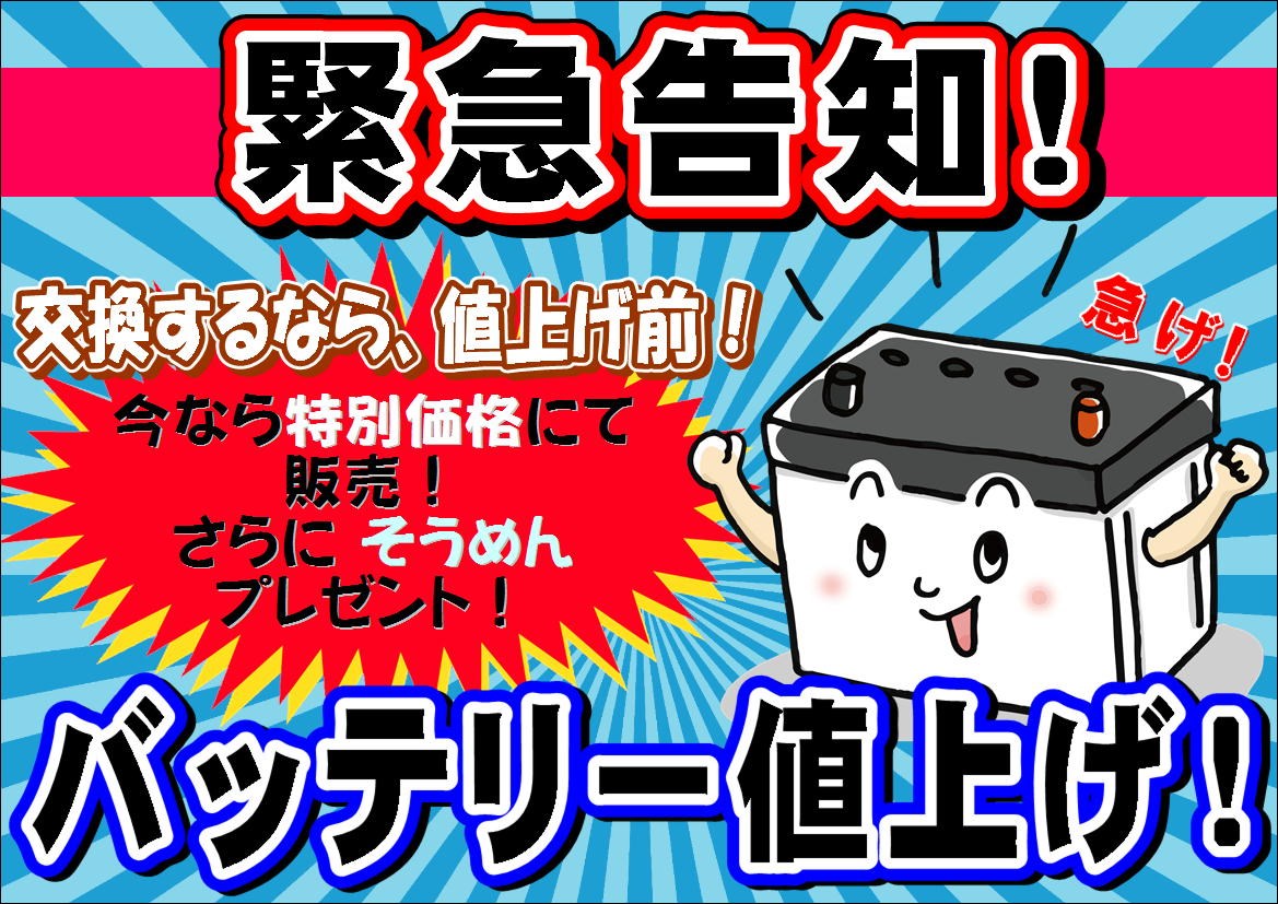 実は、バッテリーが値上がりするんです!!