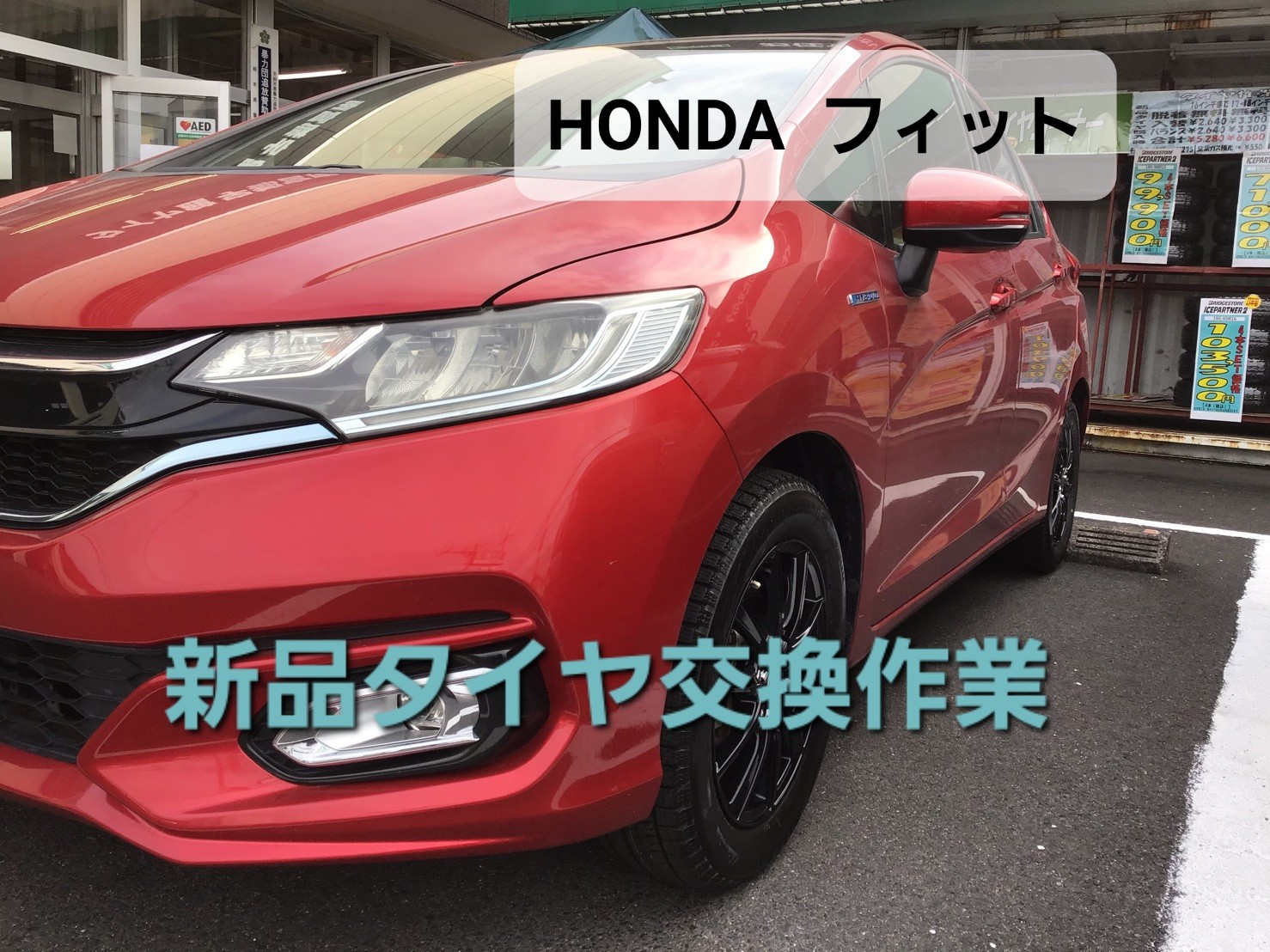 『HONDA フィット』新品タイヤ交換作業 VRX2 ホイールセット
