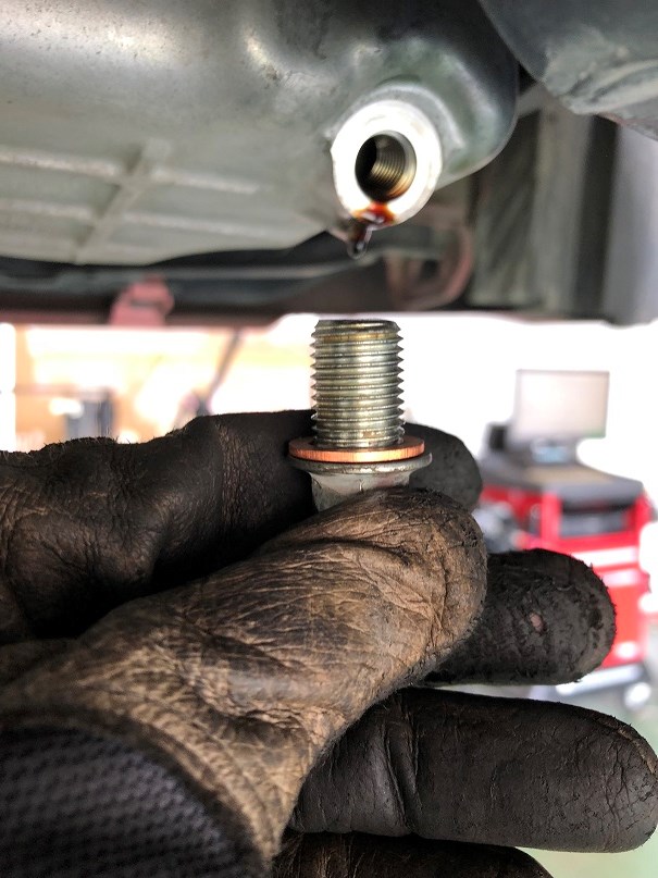 ドレンパッキンを新品に交換してドレンボルトを