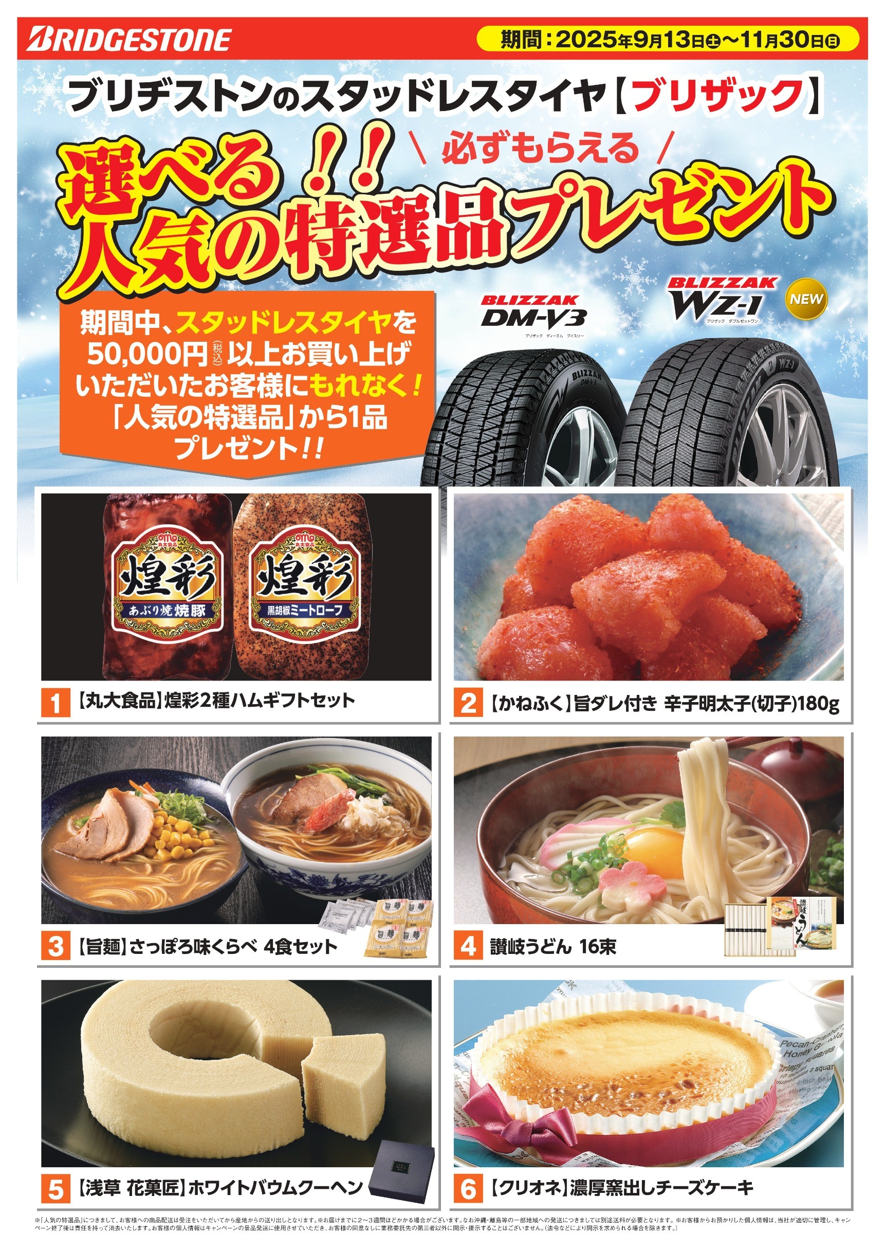 ※対象者:期間中、スタッドレスタイヤ(単品・ホイールセット)をご購入いただき