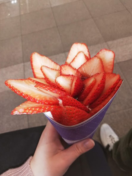 新鮮なイチゴを堪能したあとはしっとりもちもちのクレープ生地に