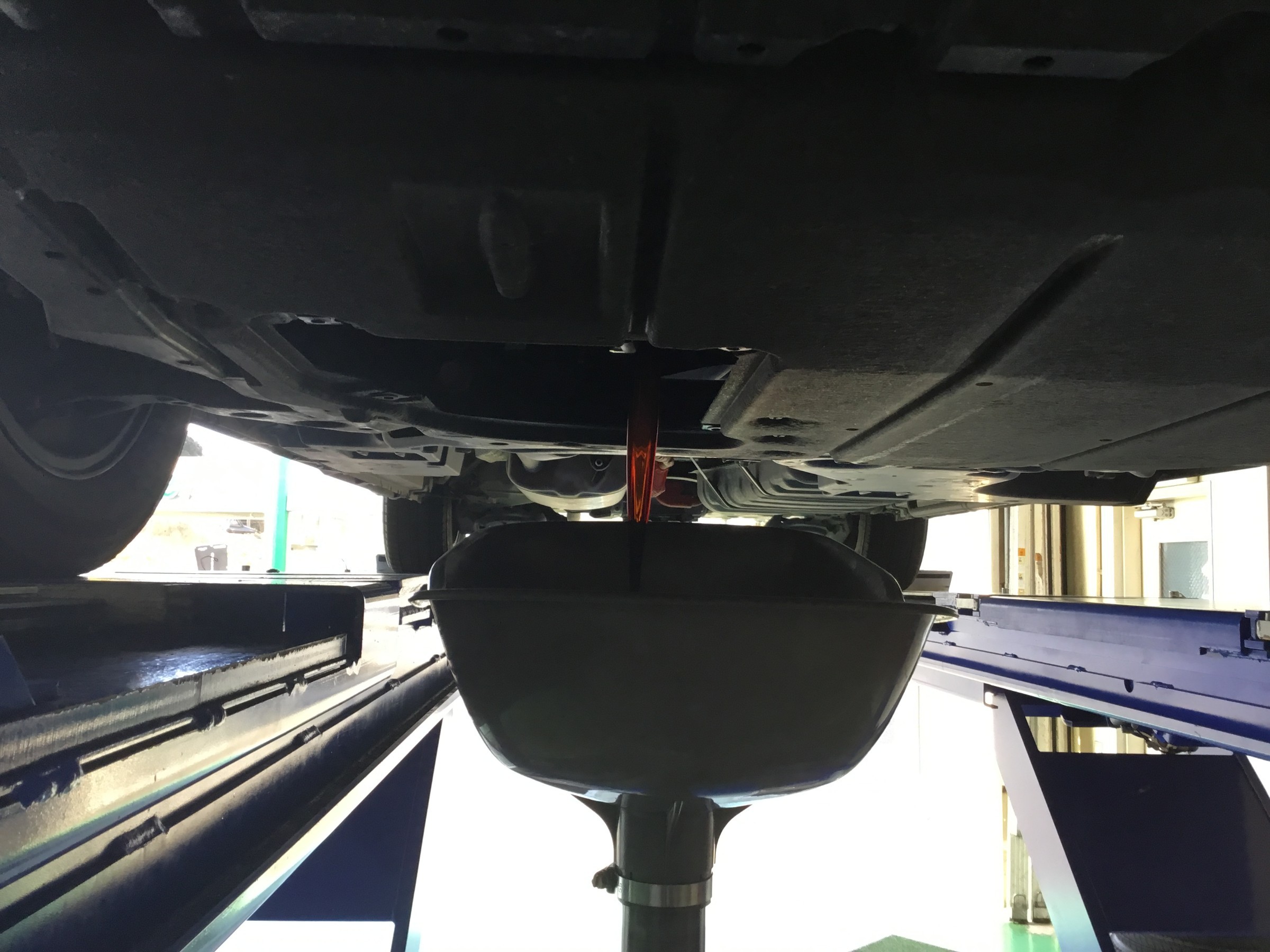 ⇩ ⇩ ドレンボルトを外し、古いオイルを排出していきます