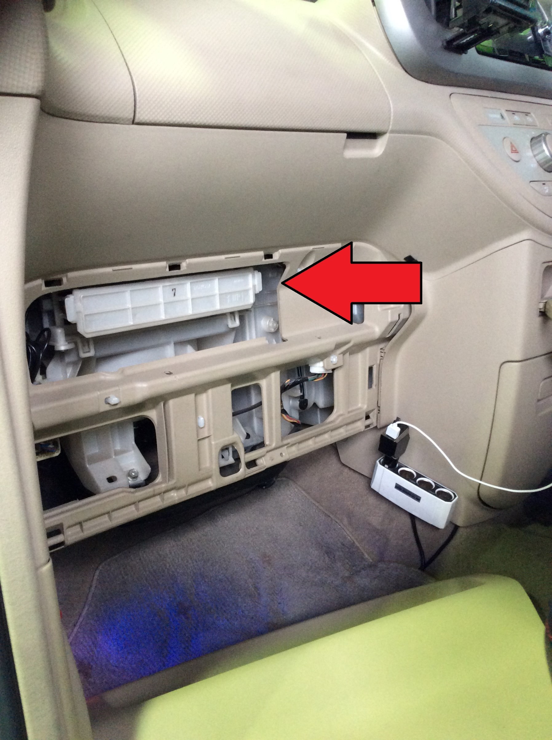 ココ!!助手席のグローブボックスを外すとこんなところにいるんです!