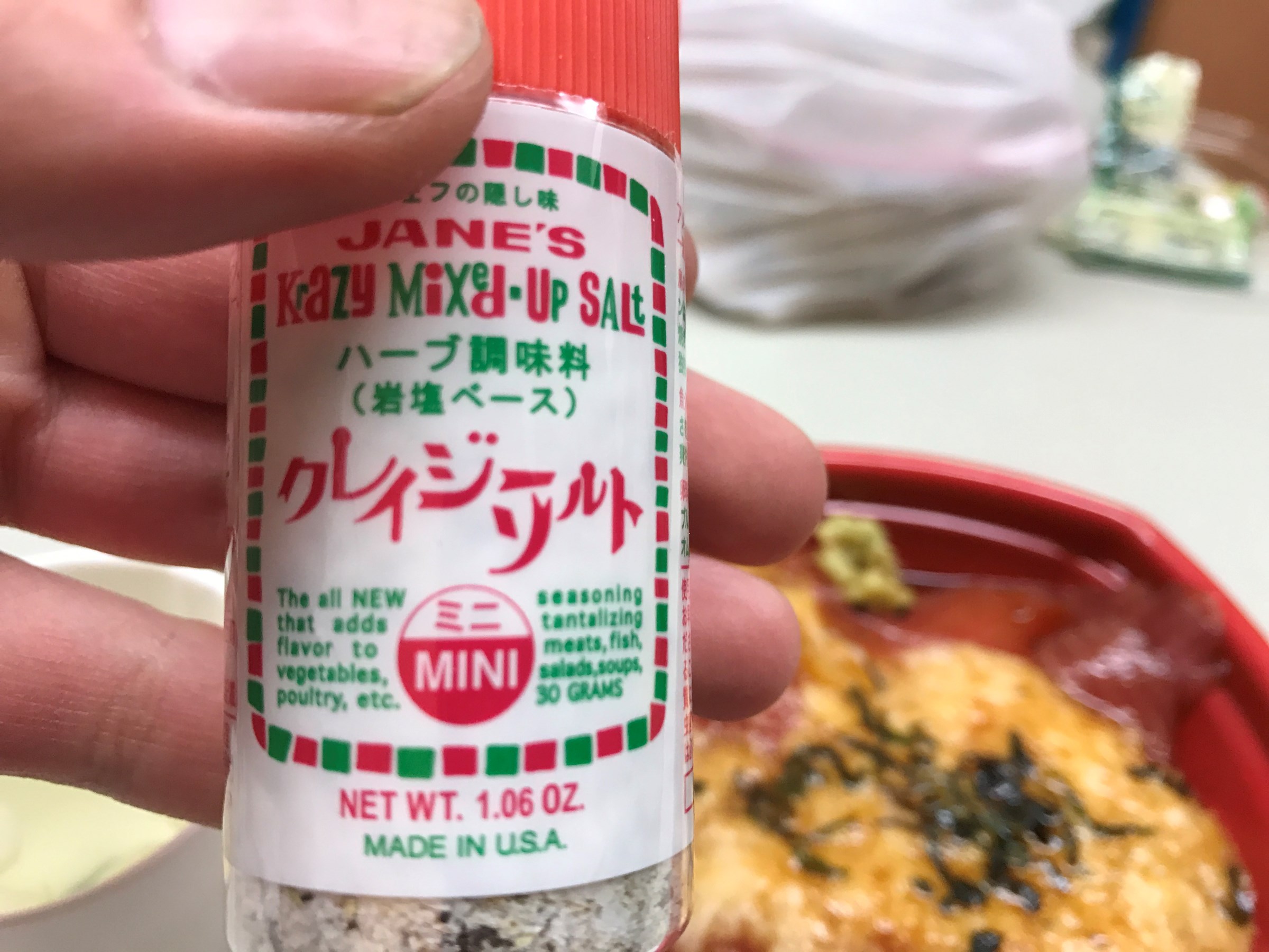 魔法の粉 ポスト 2017年3月16日 どーもー!!!!!!僕です。 今日は、とっておきの魔法の粉を紹介していこうと思います。 そーっ!!それが≪クレイジーソルト≫です。 このクレイジーソルトは、大体の料理に合うらしいので、 本日のお昼ごはん、「ヅケとろろ丼」にかけてみました。 う、旨い。とまでは、いきませんでしたが意外とアリですね。 皆さんもいろいろな料理に魔法の粉をかけてみてください。 担当:こばっちょ
