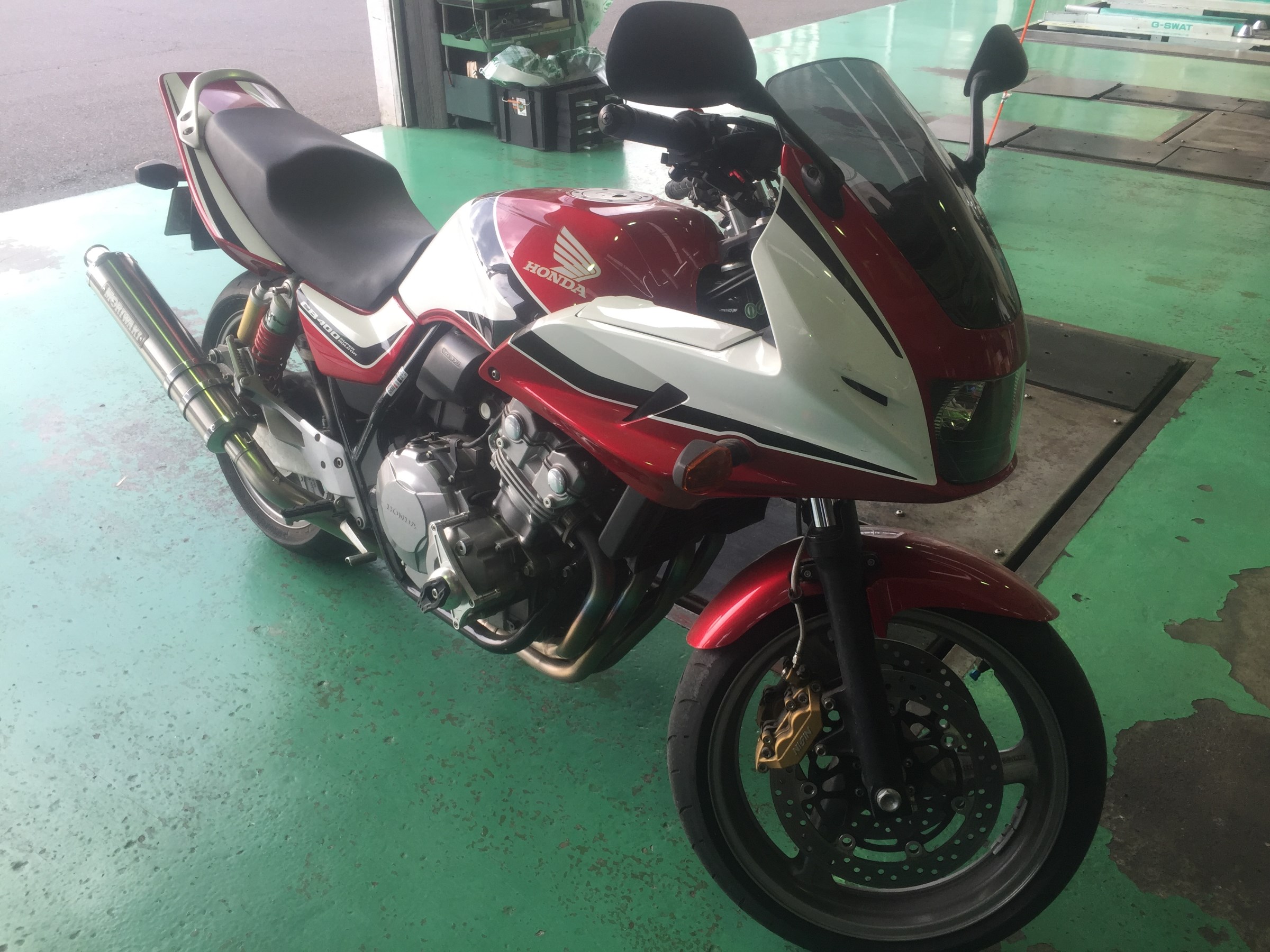久々に通勤!! ポスト 2017年3月27日 こんにちは^^ 先日の晴れた日に、久々にバイクで通勤しました。 そこで今回は自分のバイクを紹介します。 持っているバイクは HONDA CB400SVです。 最近全然乗ってなかったんですよね・・・・(半年ぐらい) 変えてあるパーツはマフラーぐらいですね。 使っているモノはMORIWAKIチタン管ですね。(憧れでしたからねチタン) バイク去年は全然乗れてなかったので今年はツーリングやイベントなどにも、頻繁に行きたいですね。 担当:うっすい