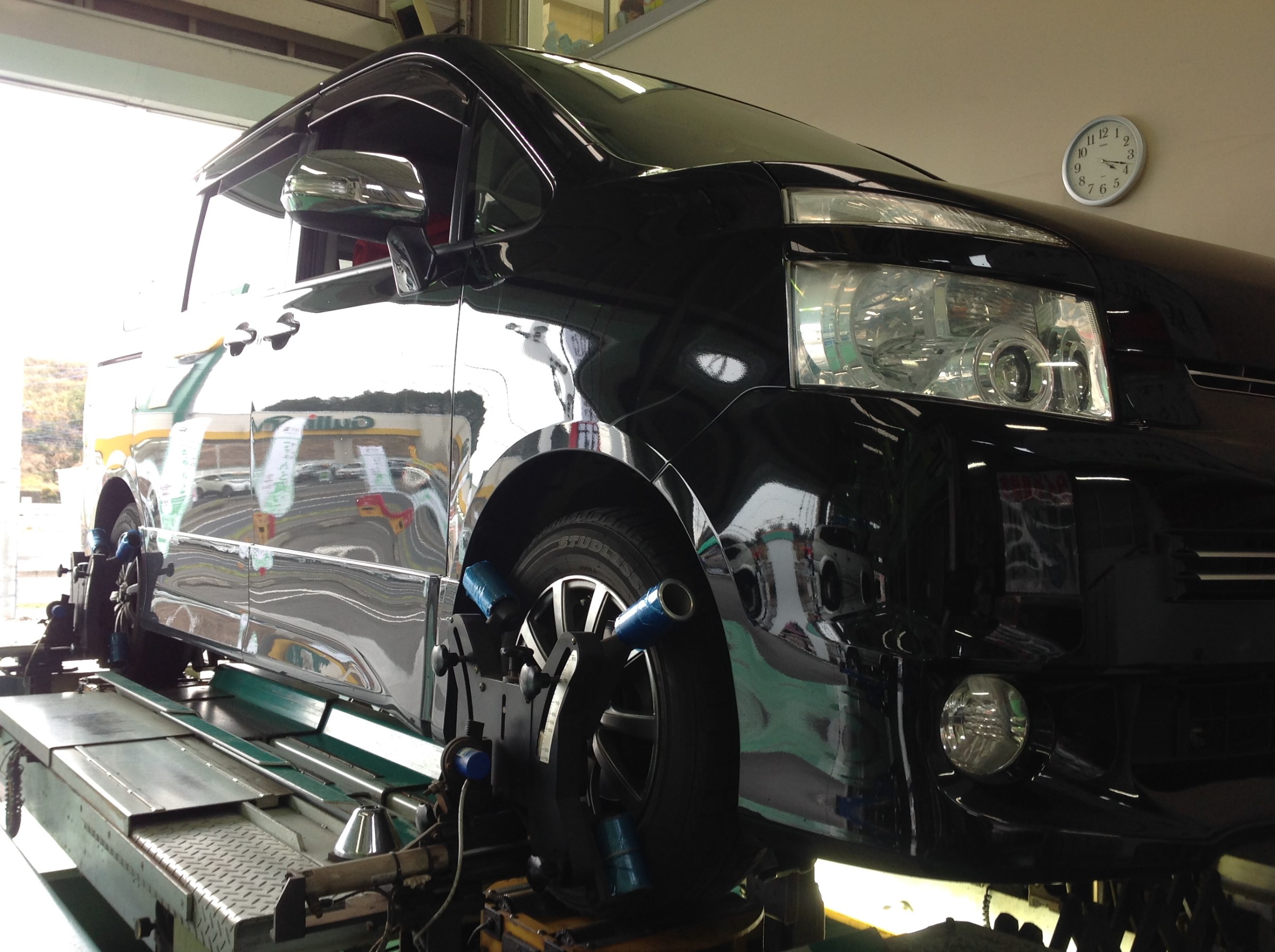 はい。今日は、70系・ヴォクシーのアライメント調整をやります!