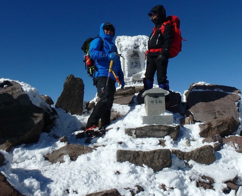 (2017.1.22 那須茶臼岳頂上 風速8m 気温-7℃)