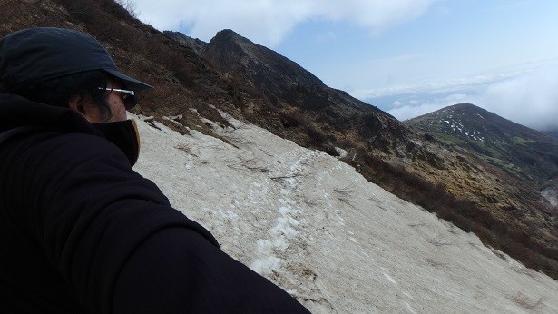 【那須岳 剣ヶ峰雪渓を渡り朝日岳へ】 1896m