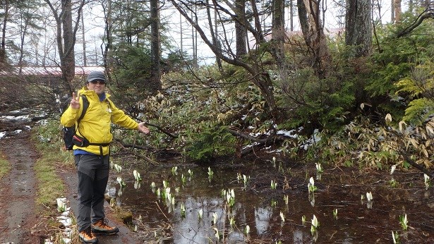 長蔵小屋裏の水芭蕉が咲いたばかりだった
