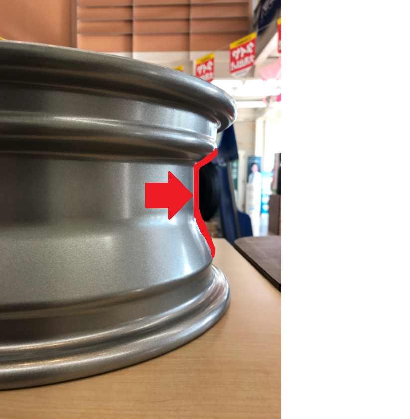 ホイールの赤い矢印の部分を[ドロップ]と言ってタイヤを組む時にこの[ドロップ]がとても重要になります。