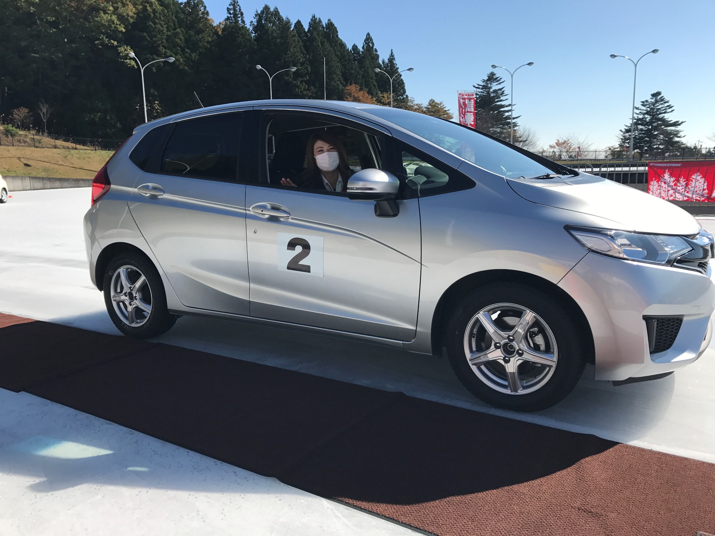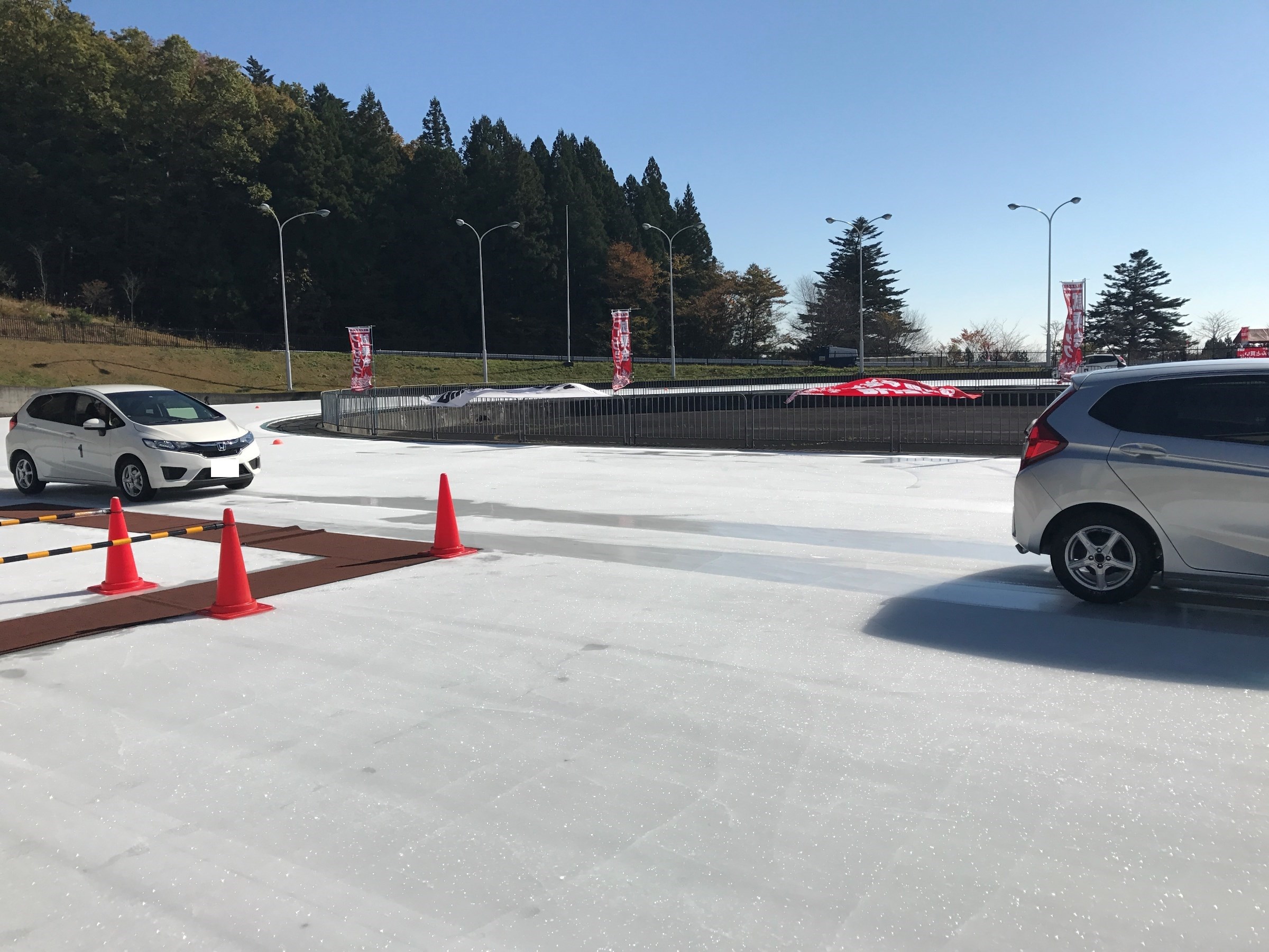 氷上では夏タイヤだとすべってしまい止れないことを体感することが出来ました。