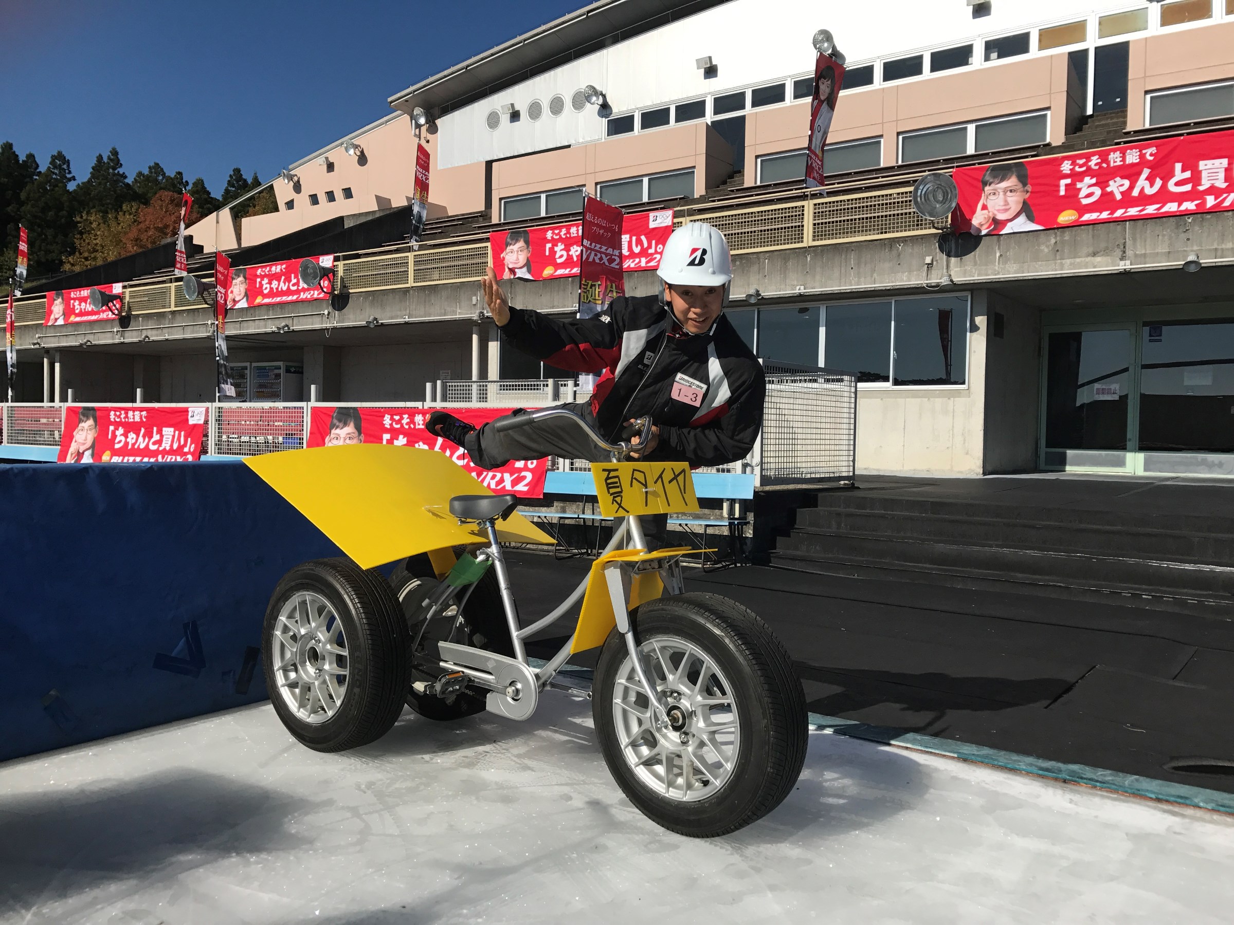 また、エコサイクルという乗用車のタイヤをつけた自転車にも試乗(*^。^*)