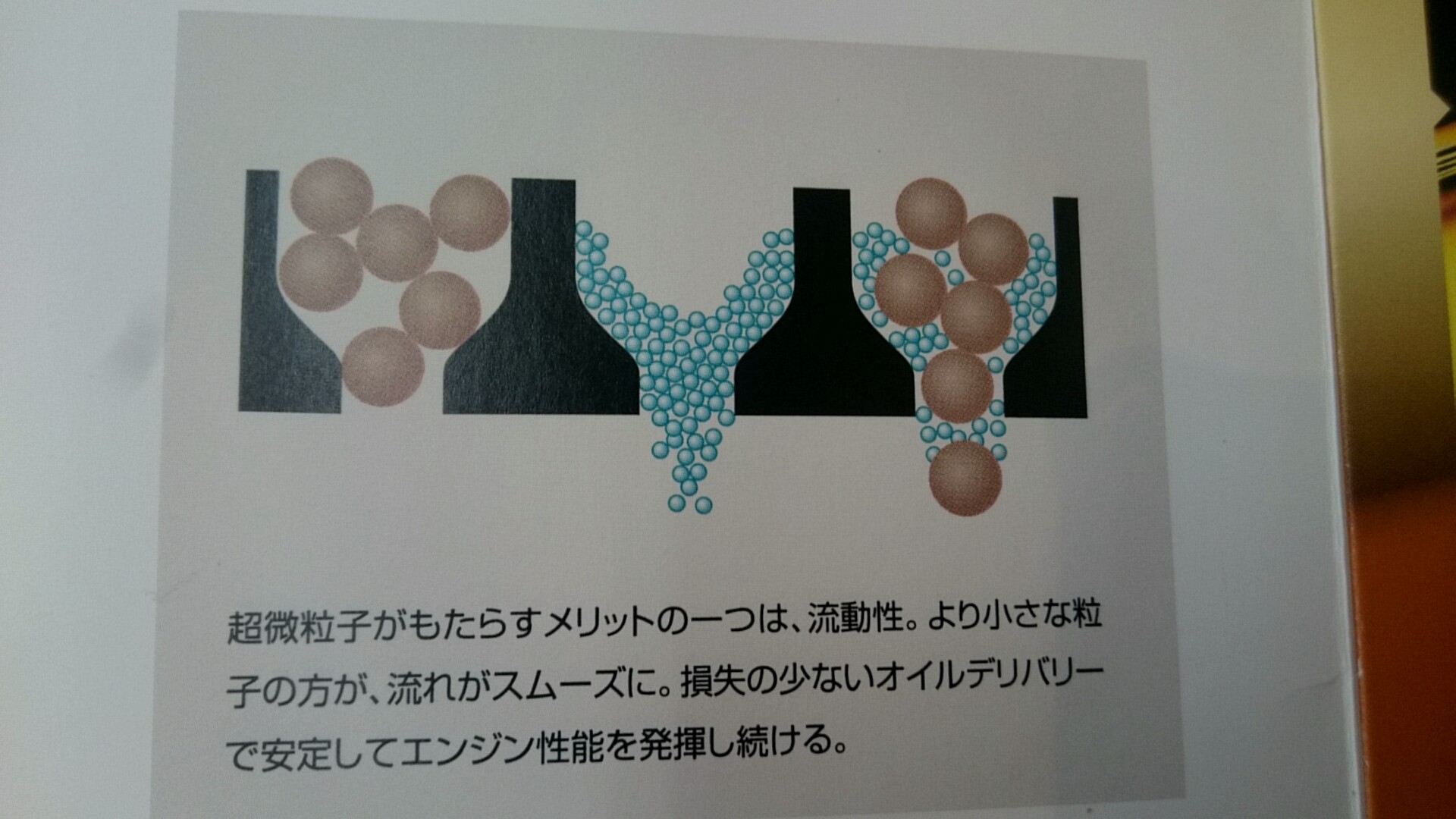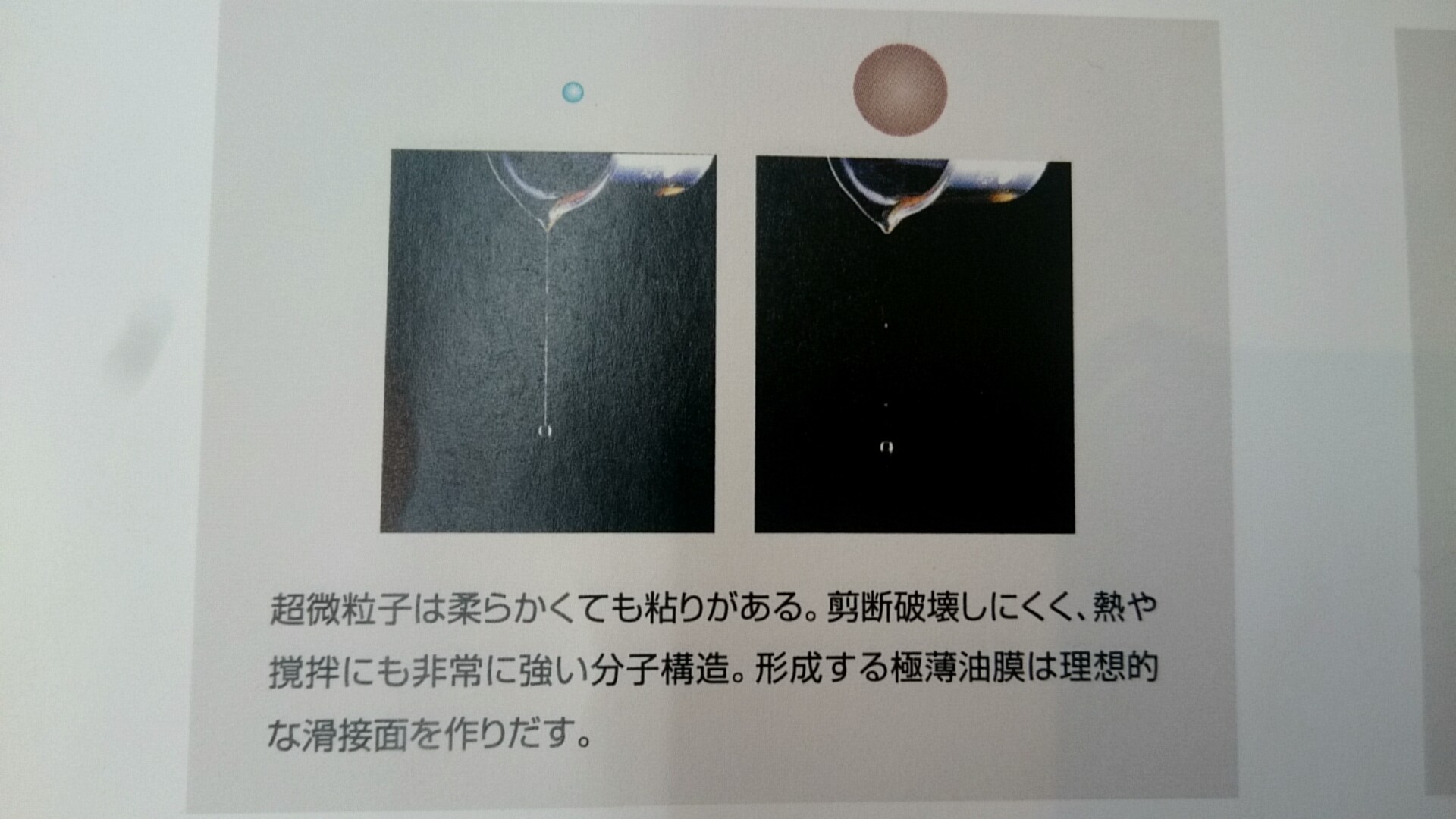 ニューテックオイルの最大の特徴が、通常のオイルの10分の1の超微粒子の分子構造により、質量が軽くなり金属表面にオイルが吸着しやすく、油膜も薄くなります!