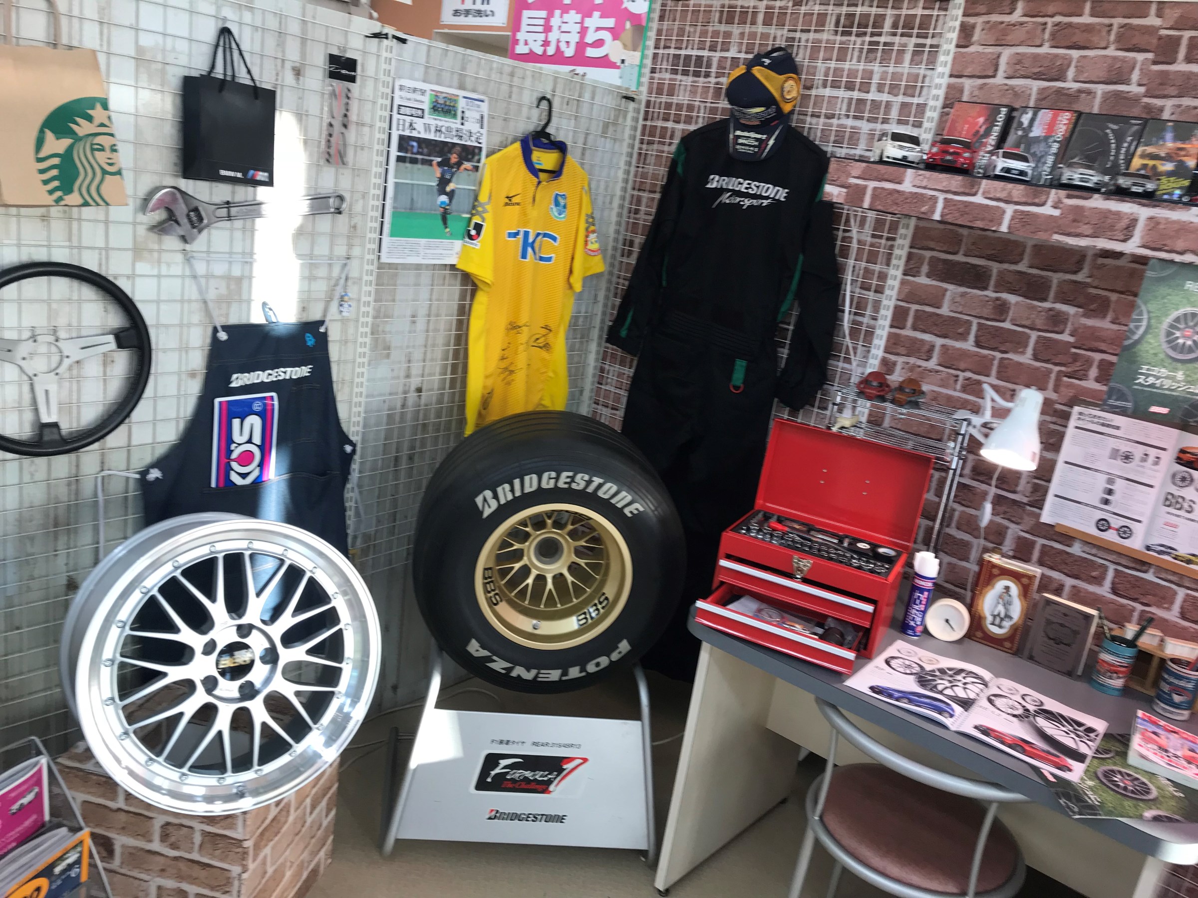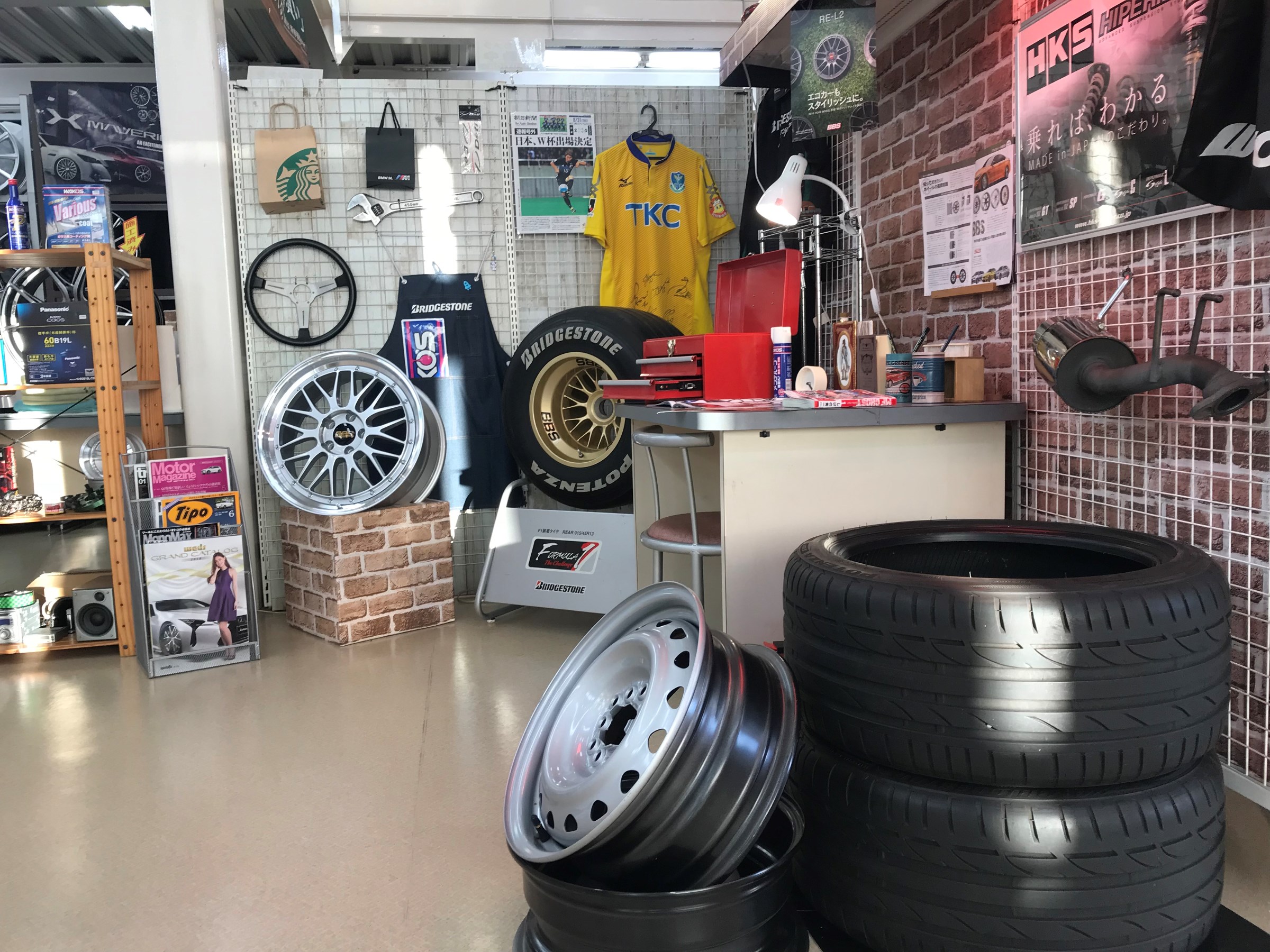 タイヤやホイールを持ってきてガレージ感UPwww
