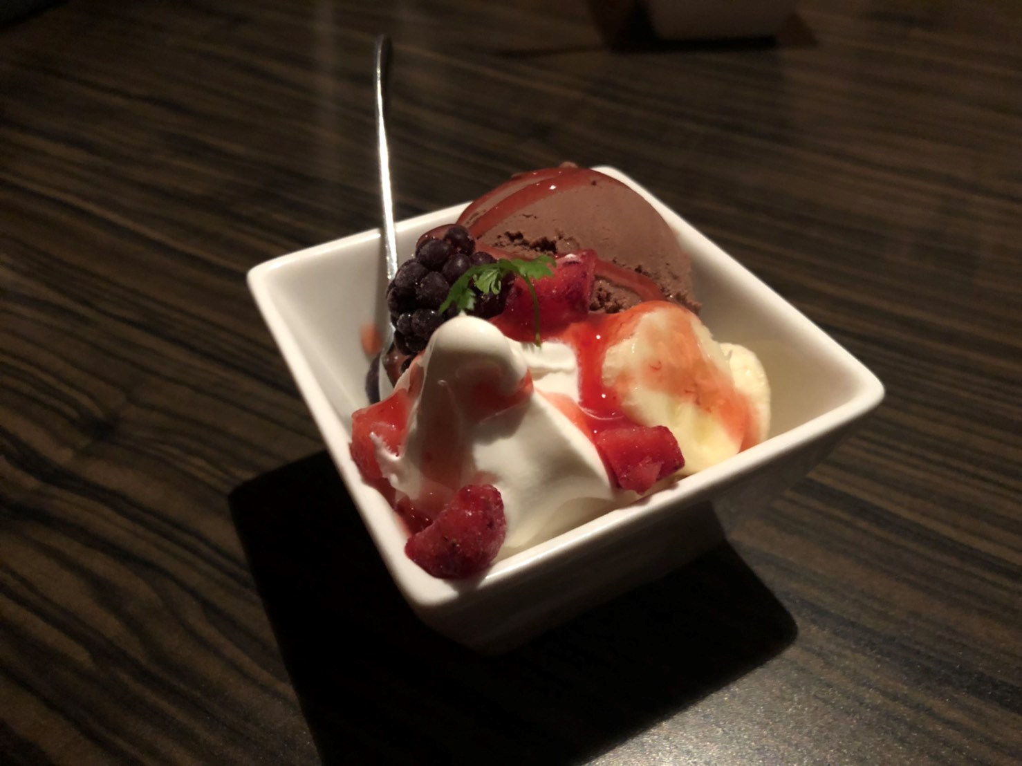 甘いアイスに酸味のきいたベリーソースでさっぱり頂けました!