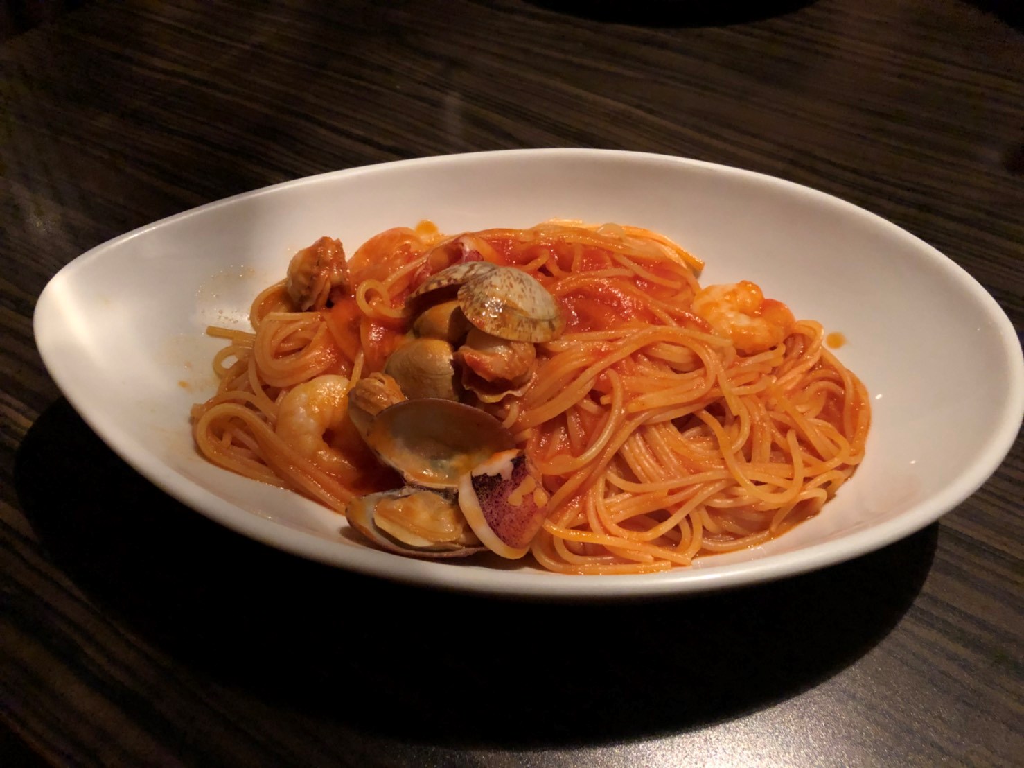昔ながらのケチャップライスのオムライスと甘めのシーフードナポリタンでした!!
