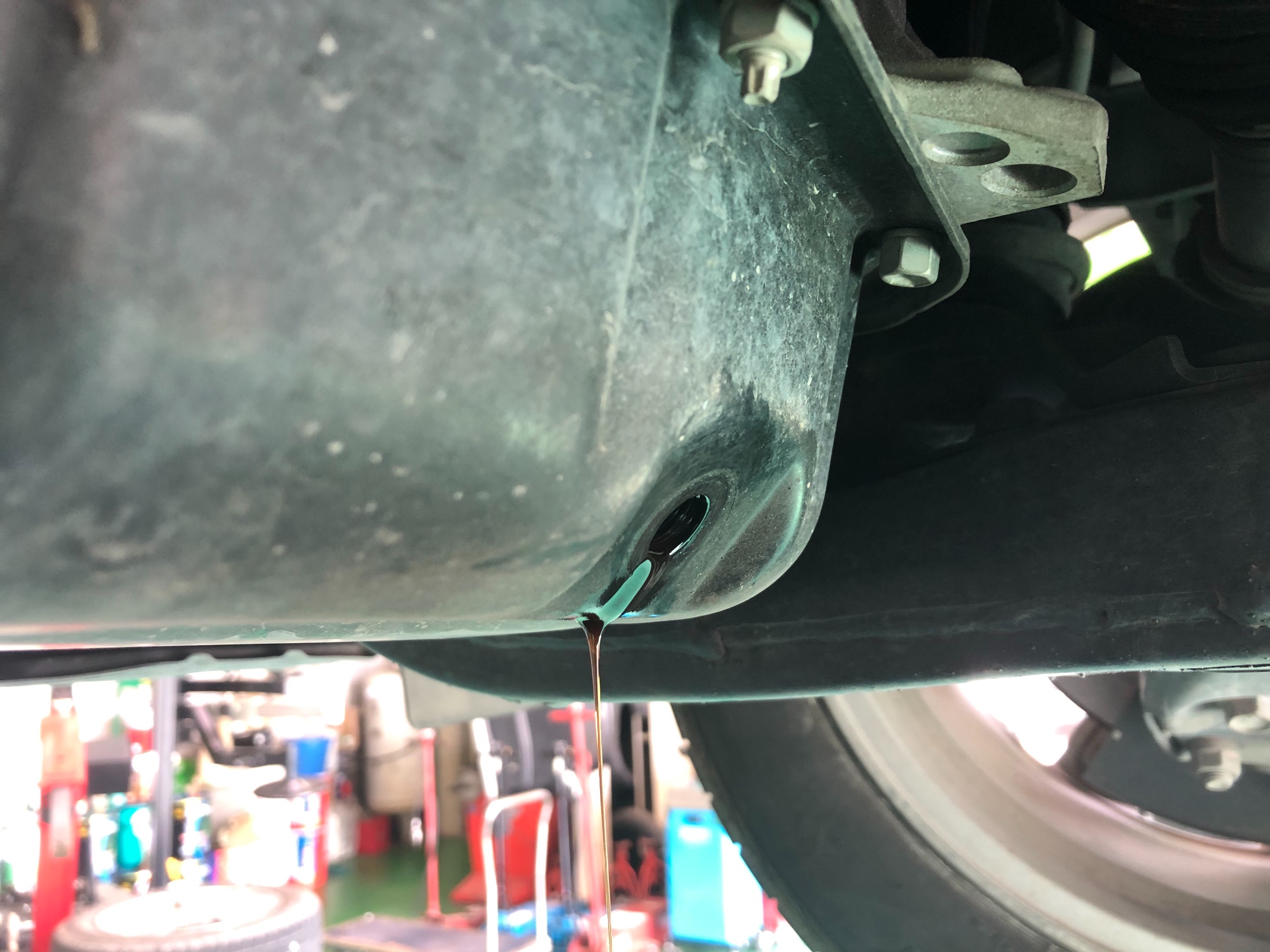 オイルキャップを開け、ドレンボルトを外してオイルを抜きます!