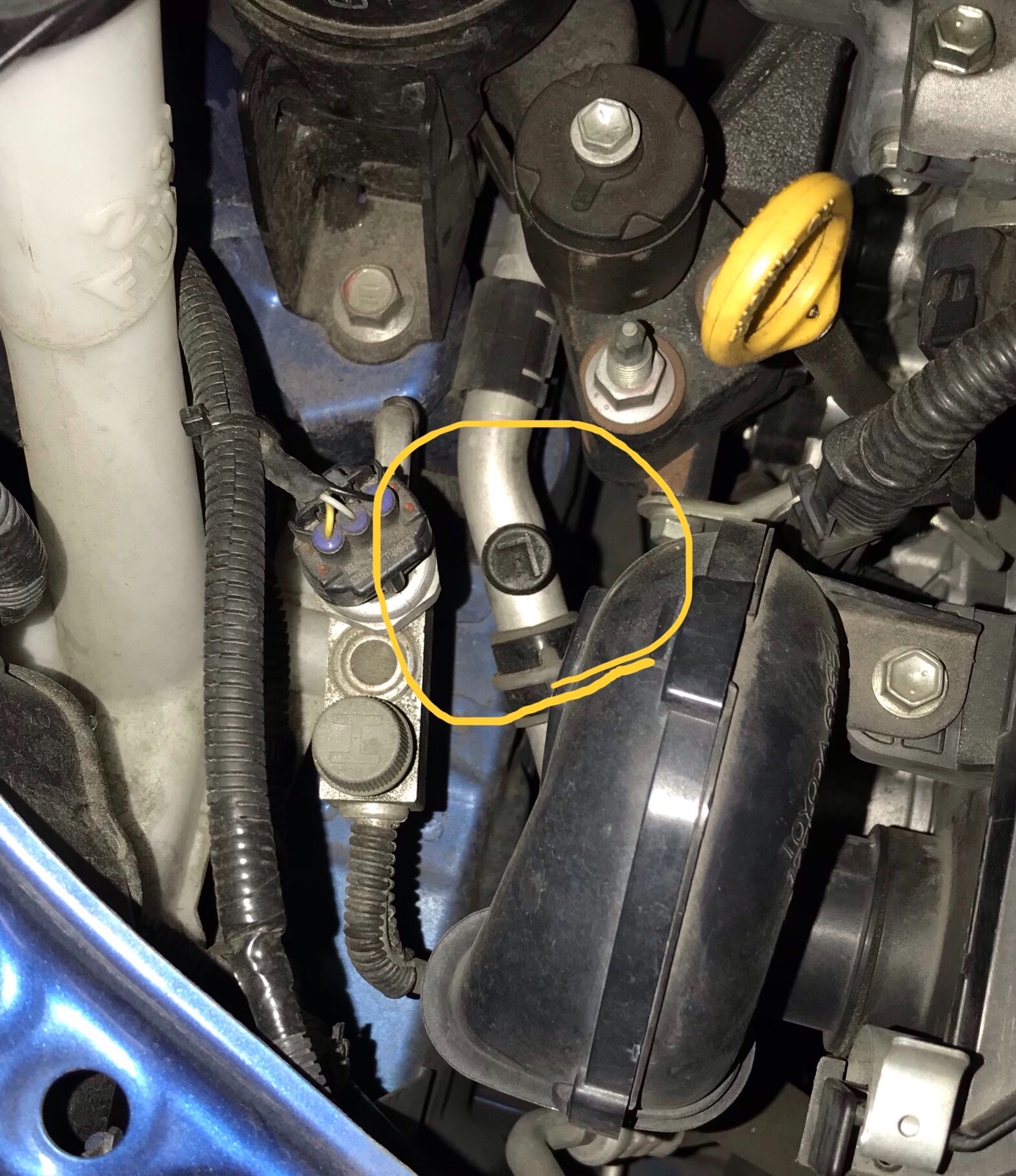 次に、エンジンルーム内のエアコンシステム配管の低圧弁を探し、その低圧弁に専用ホースを使い添加剤を注入していくだけ。車種により異なりますが施工時間は5分から10分程度で完了です。
