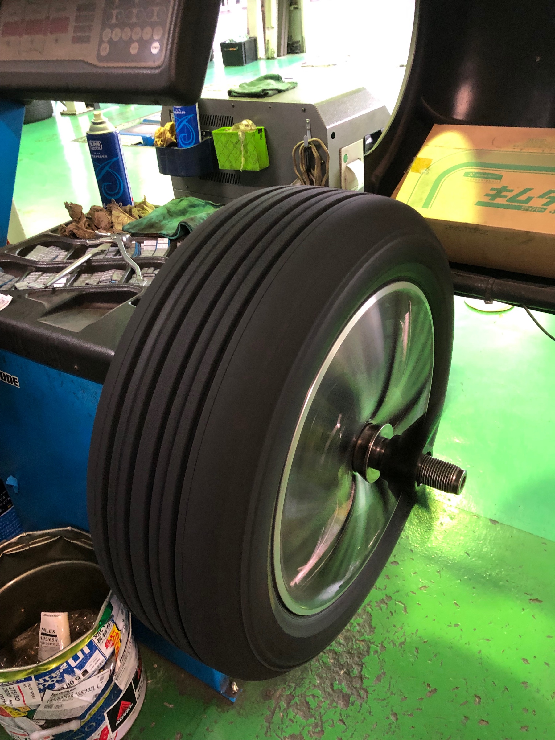 古いタイヤを外し、新しいタイヤを取り付けていきます!