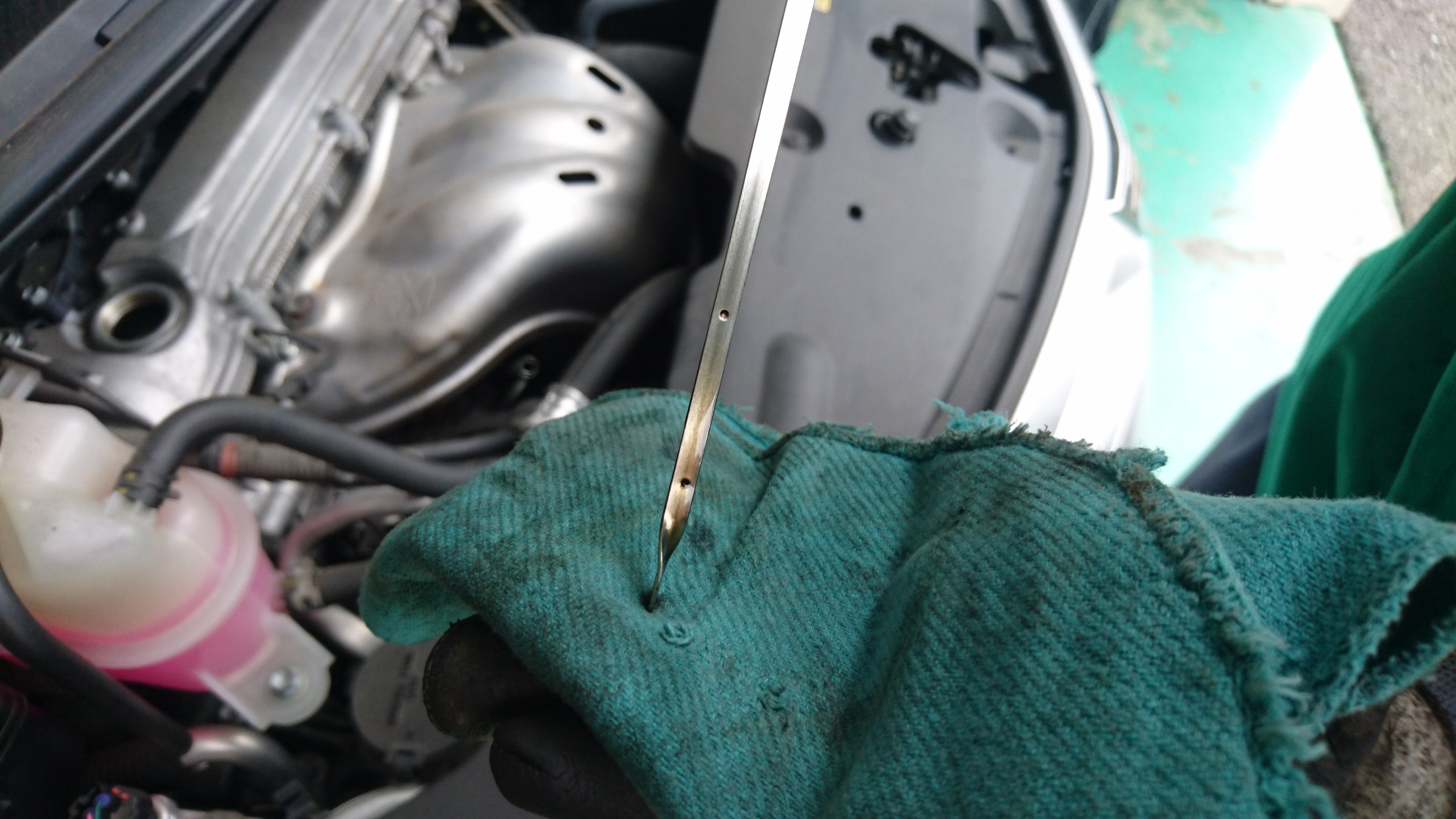 最後にオイルレベルゲージを使い、規定の油量が入っているか確認し終了です。