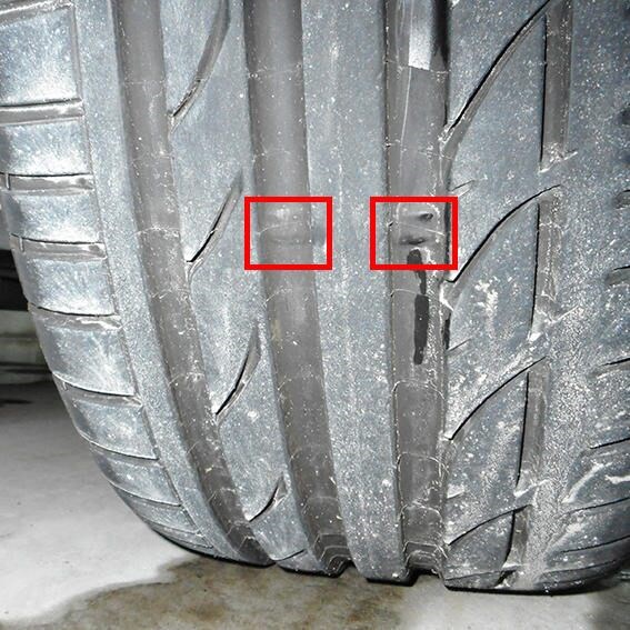 タイヤには、「スリップサイン」と呼ばれるタイヤの溝底が盛り上がっている部分があります。