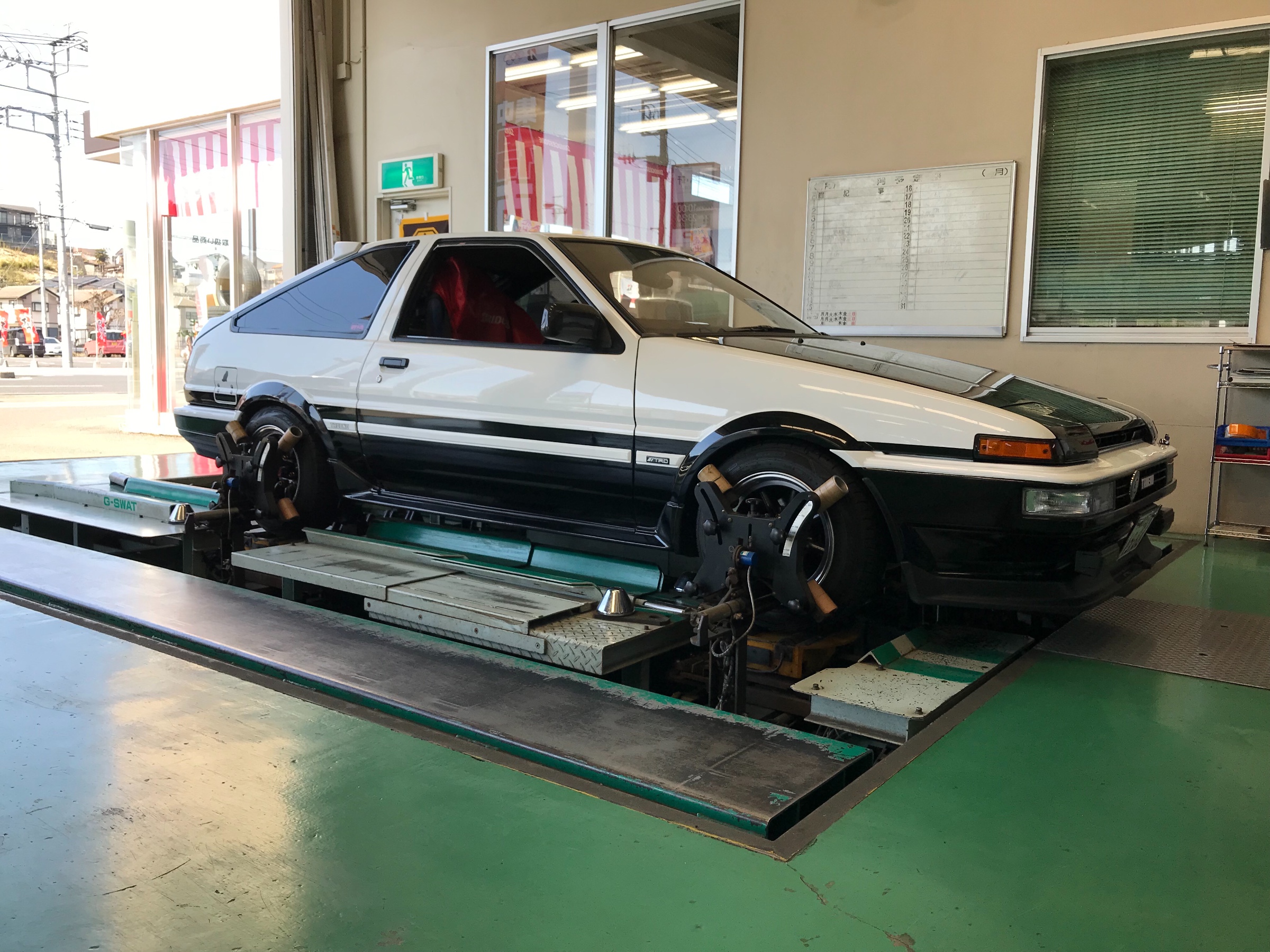 さて本日は、お題の通り「スプリンタートレノ」アライメント調整のご紹介です。