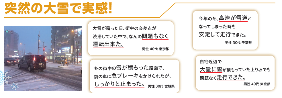 ご家族・ご友人そしてご自身を“もしも”から守るためにも高い氷雪上性能で、