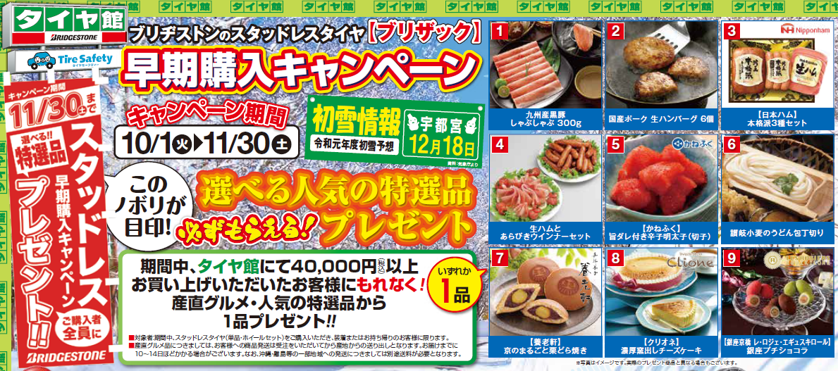 2019年10/1~11/30までの期間中にスタッドレスタイヤ