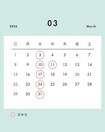 3月定休日・臨時休業のお知らせ