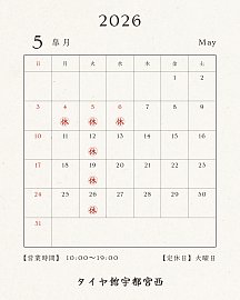 記事一覧 5月営業日のお知らせ 皆さんこんにちは ★ 本日は5月の営業日のお知らせです。 毎週火曜日 定休日 4日(月)~6日(水) 臨時休業 皆様にはご不便お掛け致しますが何卒宜しくお願い致します。 2026年4月30日 ポスト