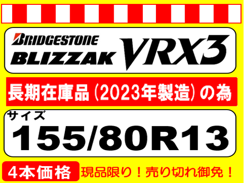 BLIZZAK VRX3 155/80R13 2023年製