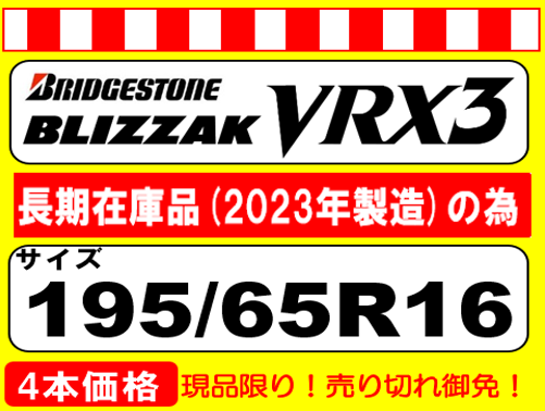 BLIZZAK VRX3 195/65R16 2023年製