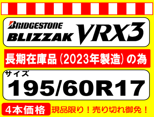 BLIZZAK VRX3 195/60R17 2023年製