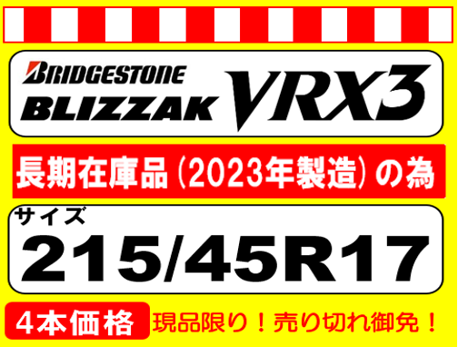 BLIZZAK VRX3 215/45R17 2023年製
