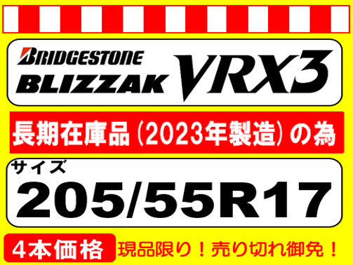 BLIZZAK VRX3 205/55R17 2023年製