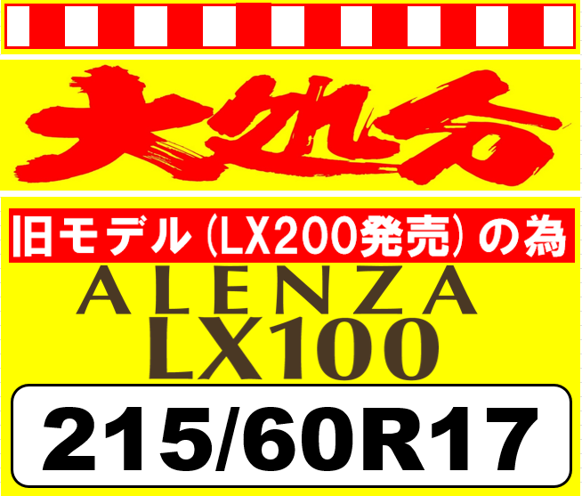 SUVユーザーの間で高い評価を得ているブリヂストンの ALENZA LX100。 静粛性・乗り心地・安定性を重視したプレミアムタイヤとして人気ですが、実は アウトレット品を選ぶことで、性能そのままに価格を大幅に抑えることができます。