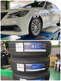 いつもご覧いただきありがとうございます! 本日は、トヨタ クラウンのタイヤ交換を させていただきました! REGNO GR-XⅡ 215/55R17