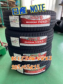 いつもご覧いただきありがとうございます<(_ _)> 本日は、日産ノートのお客様が スタッドレスタイヤをお持ち帰り していただきました! BLIZZAK VRX3 185/65R15 人気車種のタイヤは、手に入りにくい状況なので ご購入をお考えの方は、お早めに。