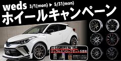 3/1(月)より5/31(月)まで ウェッズアルミホイールキャンペーン開催! 期間中、対象ホイールご購入でナットセットプレゼント! 在庫品!サンプル品もあります 是非この機会に現物確認にご来店ください♪ ウェッズホームページはこちら