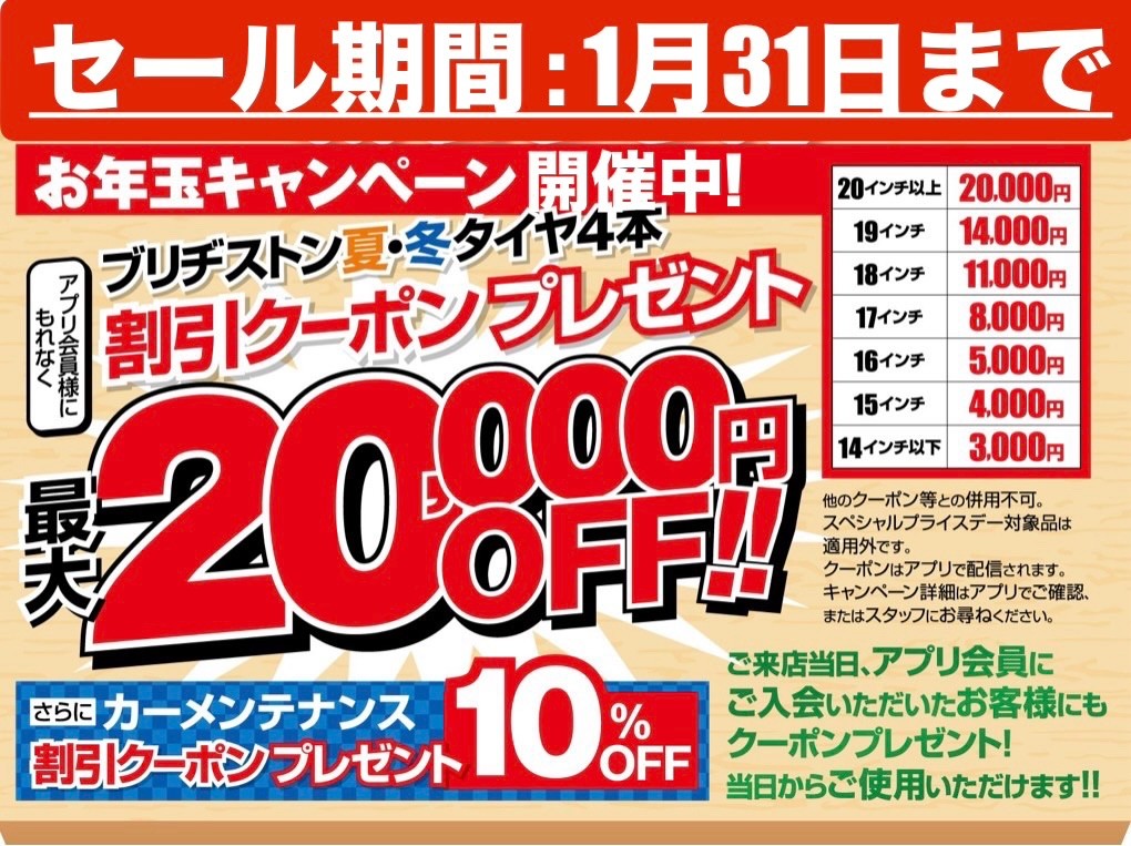 期間限定!!『タイヤスペシャルプライスデー』開催中!! 1/25(日)まで!!