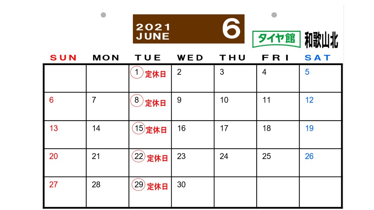 6月定休日のお知らせ。 ポスト 2021年5月30日 こんにちは! タイヤ館和歌山北店です(^O^) 当店のWEBをご覧頂き ありがとうございます♪ ***6月定休日のお知らせ*** 6月定休日は下記の通りになりますので ご来店の際はご注意下さい。