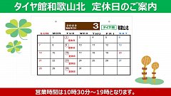 皆様こんにちには! タイヤ館和歌山北店です! ***3月定休日のお知らせ*** 下記の通りとなります。 通常通り火曜日が定休日ですので ご迷惑をおかけしますがよろしくお願い致します。