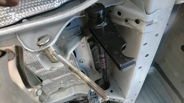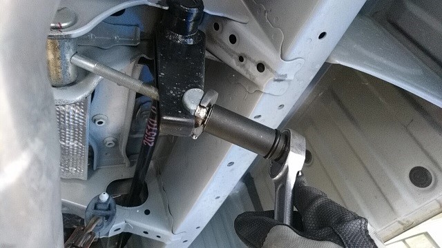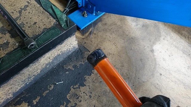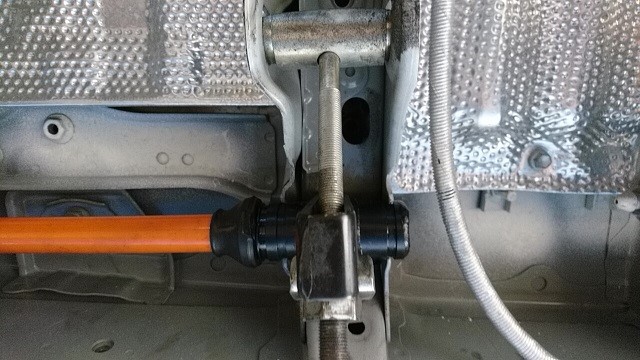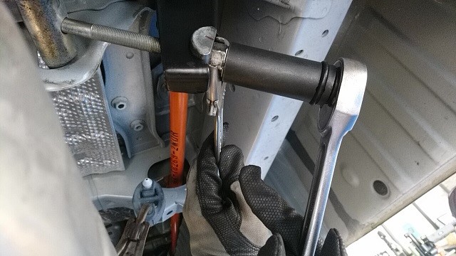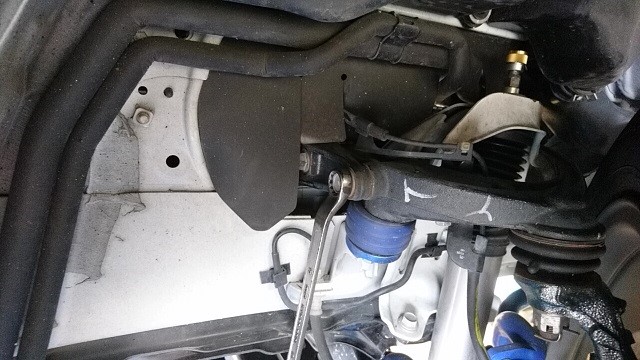 トーションバーとつながっている部品のネジ2本を緩めます。