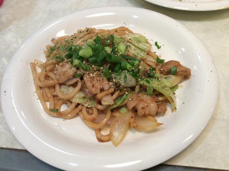 今日の晩御飯は、近くの鉄板焼き屋さんで焼酎とホルモンうどん、