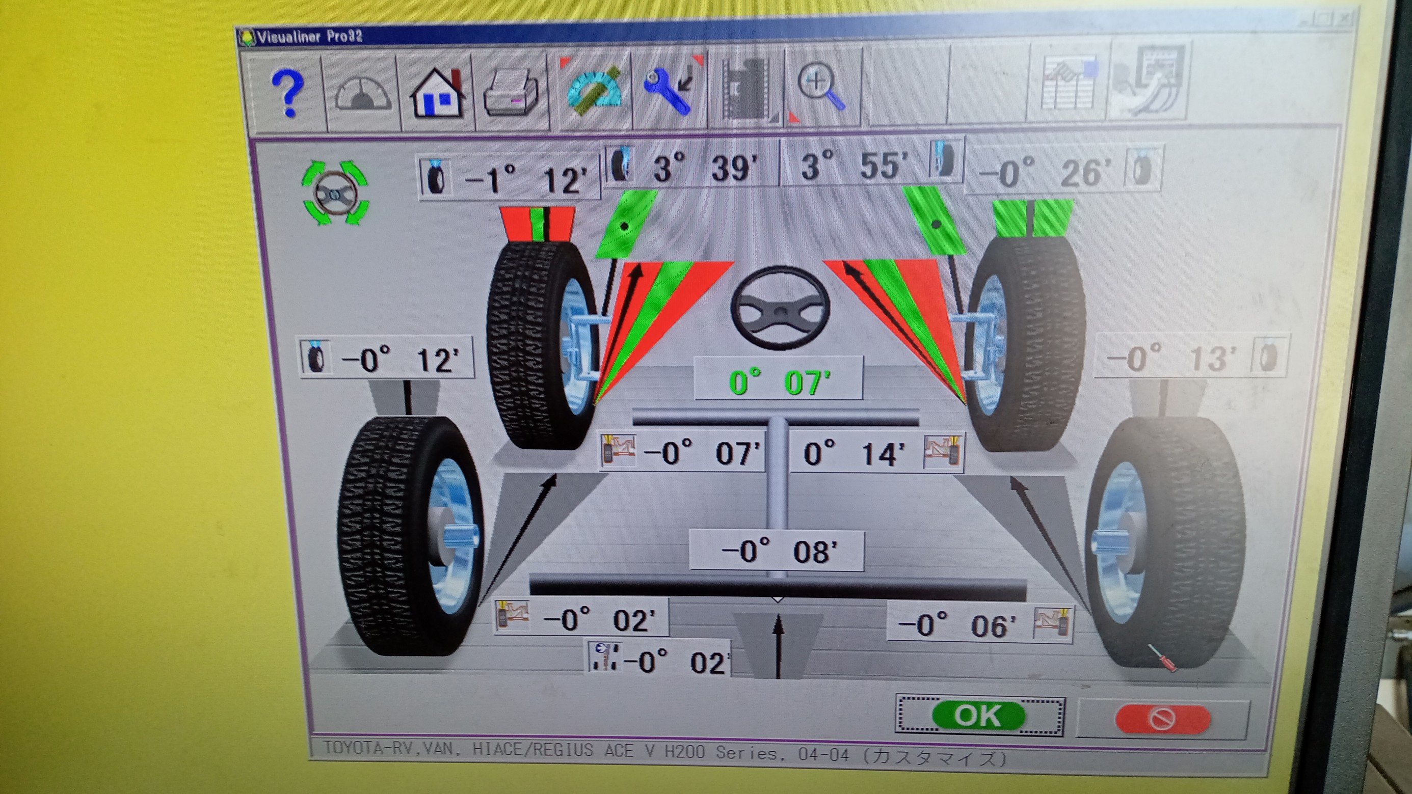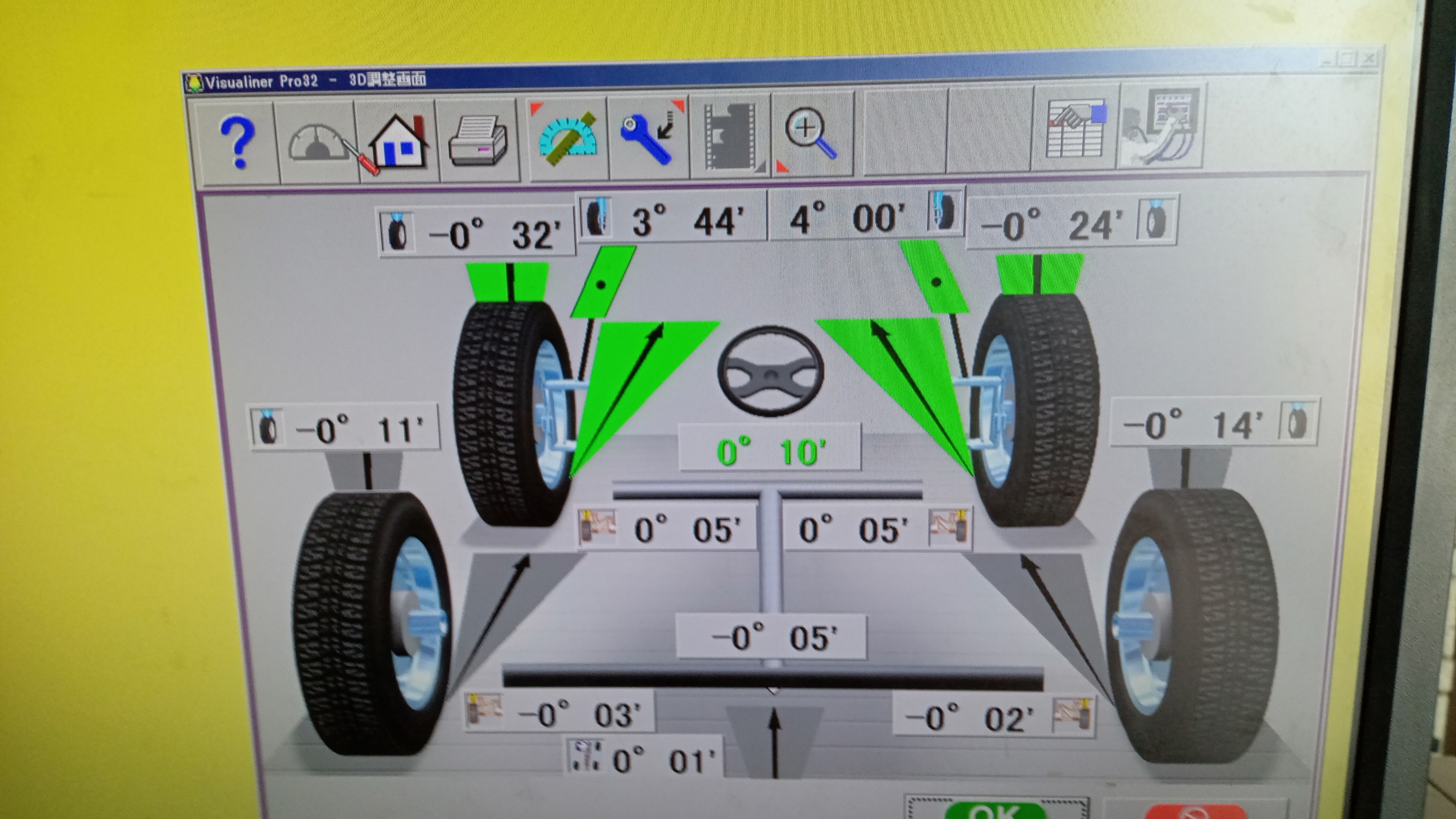 大きくキャンバーの左右差、若干キャスター・トーの左右差がありました!
